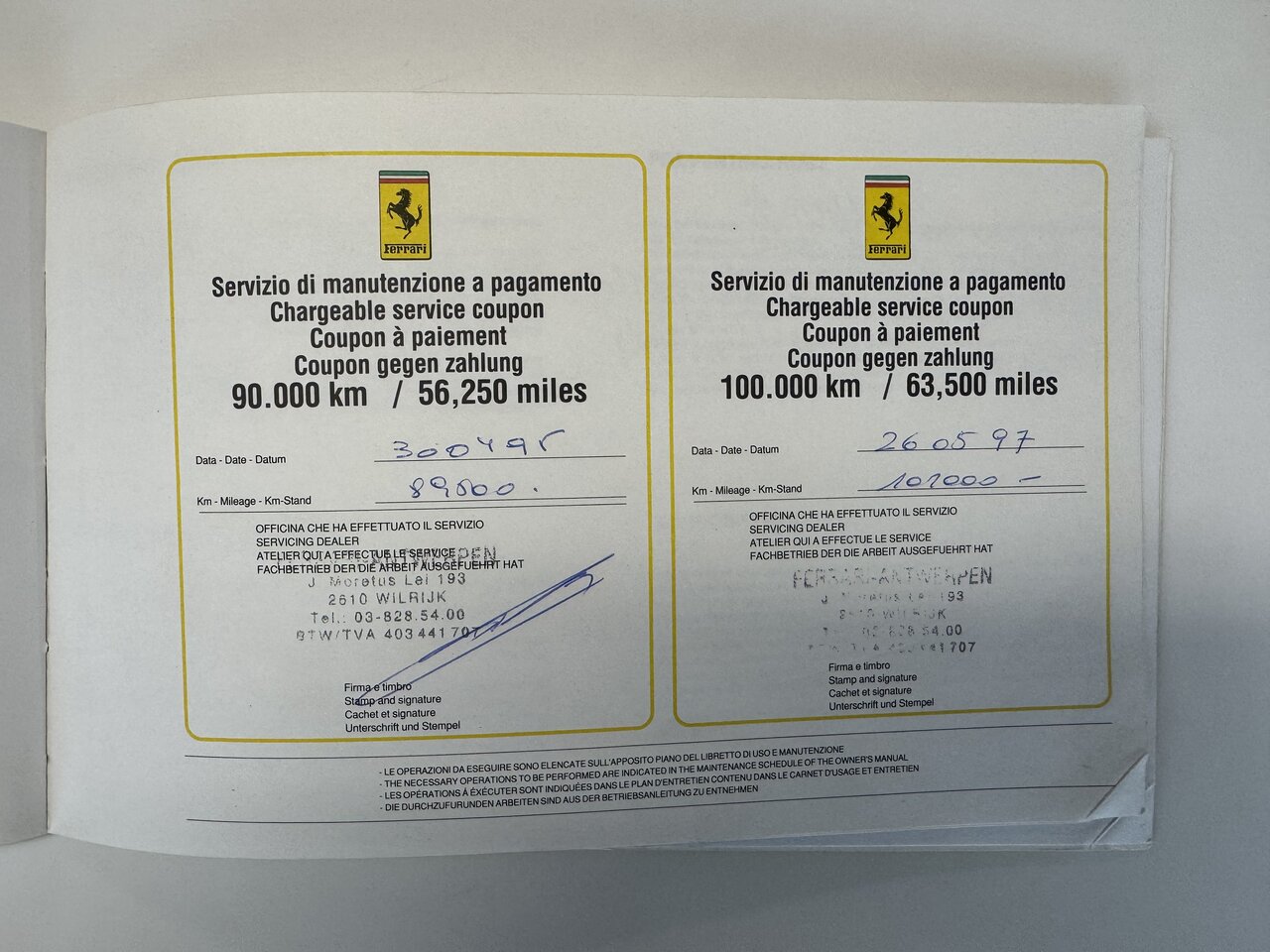 - Onderhoudshistoriek gekend. Onderhoudsboek aanwezig en afgestempeld.